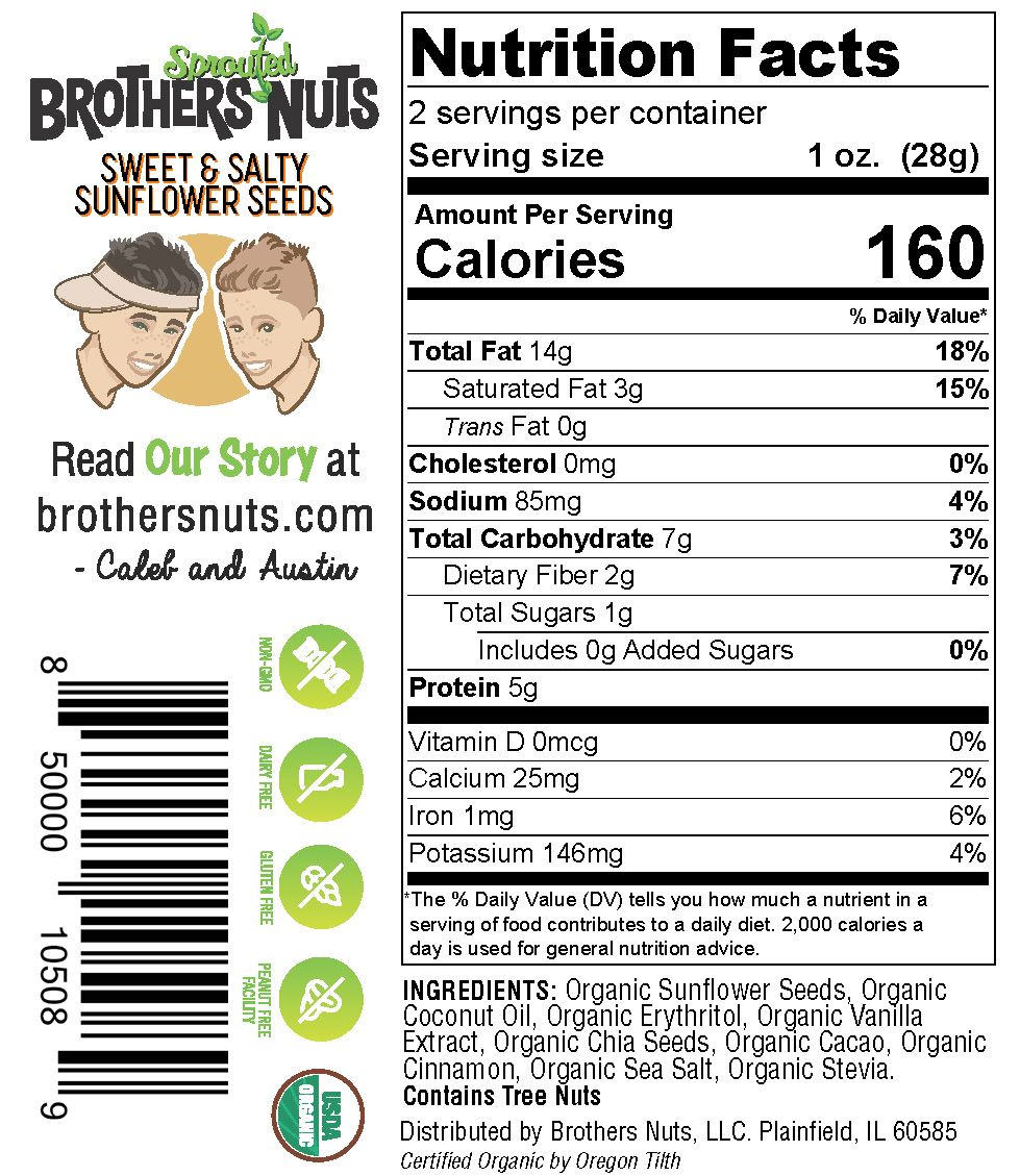 These sunflowers seeds are made with cacao and are very low in sugar because of the organic sweeteners.